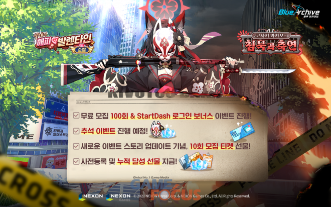(주)넥슨(대표 이정헌)은 자회사 넥슨게임즈(대표 박용현)에서 개발한 서브컬처 게임 '블루 아카이브'에 이벤트 스토리 '샬레의 해피 발렌타인 순찰' 및 '코사카 와카모의 침묵과 축연'을 업데이트했다고 7일 밝혔다.
