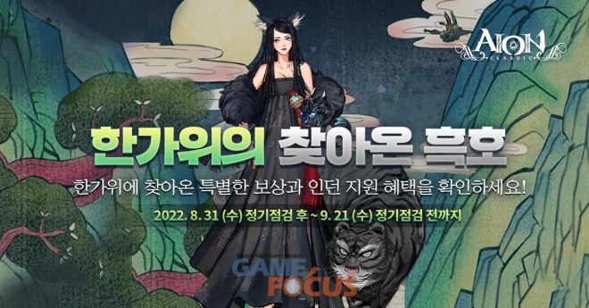 ▲'아이온'은 9월 21일까지 클래식 서버에서 '한가위에 찾아온 흑호' 이벤트를 진행한다. 이용자는 퀘스트를 통해 획득한 '흑호의 송곳니'를 조립하여 '포효하는 흑호 무기 선택 상자'를 얻을 수 있다. 접속 누적 시간에 따라 획득한 '머리 장식'과 '비단'을 조립 시 '한가위 머리 장식/의상 선택 상자'를 얻는다. 라이브 서버는 '한가위의 달콤한 꿀송편' 이벤트를 실시한다. 획득한 '꿀송편'을 NPC를 통해 한복 외형, 머리 장식 등과 교환 가능하다. 꿀송편과 '보름달의 기운'을 조립하면 다양한 보상이 담긴 '화려한 송편 바구니'를 얻을 수 있다. 전 서버의 대도시에서는 한가위 정취를 느낄 수 있는 배경도 만나볼 수 있다.