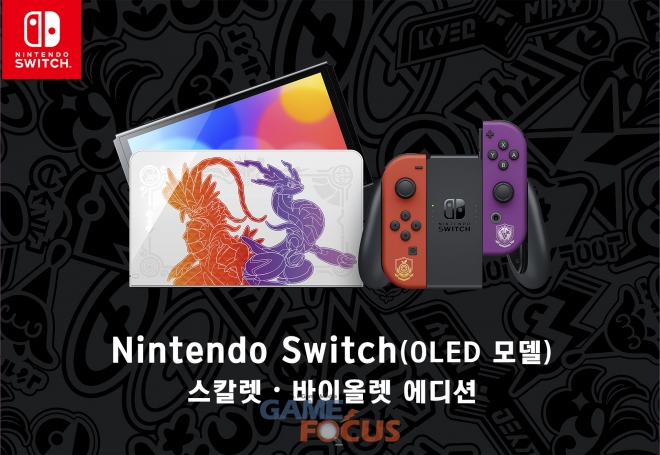 한국닌텐도가 Nintendo Switch 소프트웨어 '포켓몬스터 스칼렛・바이올렛'에 등장하는 전설의 포켓몬, '코라이돈', '미라이돈'과 게임에서 모험의 첫 파트너로 선택할 수 있는 '나오하', '뜨아거', '꾸왁스'가 디자인된 'Nintendo Switch(OLED 모델) 스칼렛・바이올렛 에디션'을 2022년 11월 4일 희망소비자가격 425,000원에 발매한다고 발표했다. 단, 여기에는 '포켓몬스터 스칼렛・바이올렛' 게임 소프트웨어는 포함되어 있지 않다.