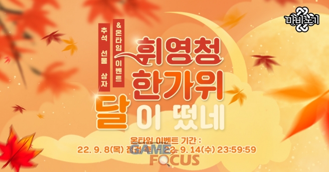 ‘마비노기’는 9월 14일까지 매일 풍성한 보상을 선물하는 ‘휘영청 한가위 달이 떴네’ 이벤트를 진행한다. 접속만 해도 매일 ‘울라/그림자/벨테인 엘리트 통행증 선택 상자’와 전투 능력치 상승 아이템이 담긴 ‘2022 한가위 선물 상자’, 각종 스킬 및 생산품 품질을 향상해주는 ‘2022 송편 세트 선택 상자’를 획득할 수 있으며, 추석 기간 동안에는 ‘슈팅 스타 호루라기’, ‘낭만 농장’ 꾸미기 아이템 등 추가 보상 획득도 가능하다. 또, 여름 시즌 큰 사랑을 받았던 ‘이것으로 완벽해 GYM’과 ‘다시 만난 밀레시안’을 9월 15일까지 연장하고 인벤토리 및 펫 대여, 각종 버프 효과 등을 제공한다.