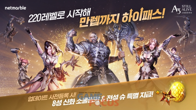넷마블(대표 권영식, 도기욱)은 모바일 배틀로얄 MMORPG 'A3: 스틸얼라이브'(개발사 넷마블엔투)의 대규모 업데이트를 앞두고 사전등록을 9월 15일부터 시작한다고 밝혔다.
