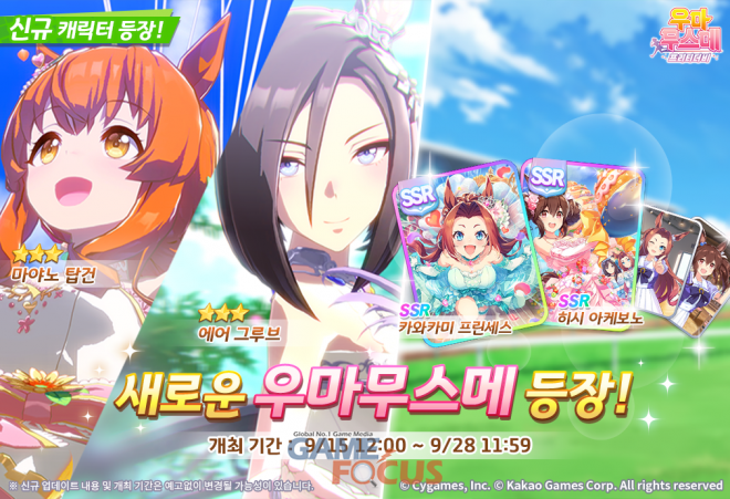 (주)카카오게임즈(대표 조계현)는 15일, (주)사이게임즈(대표 와타나베 코우이치)가 개발한 모바일게임 '우마무스메 프리티 더비'에 신규 의상 육성 우마무스메 2명과 서포트 카드 4종을 업데이트했다.
