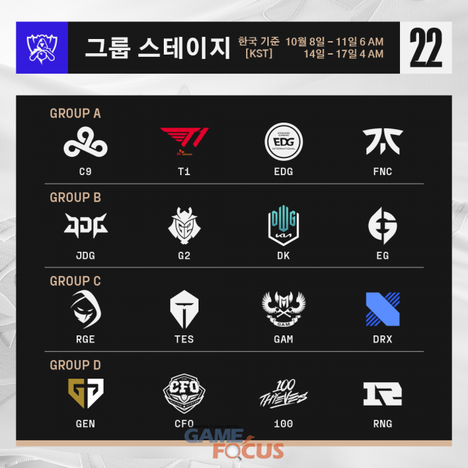 LCK(한국) 4번 시드로 2022 리그 오브 레전드 월드 챔피언십 플레이-인 스테이지에 참가한 DRX가 5전 전승으로, 조 1위를 차지했다.