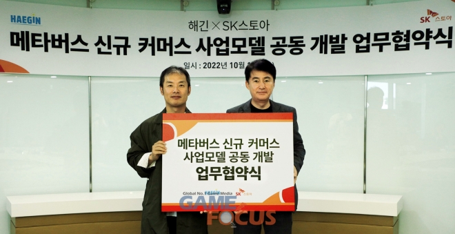 지난 11일, 서울시 상암동에 위치한 SK스토아 본사에서 메타버스 기반의 신규 커머스 사업모델 공동 개발을 위해 해긴과 SK스토아 양사의 업무협약(MOU)를 체결했다고 밝혔다.