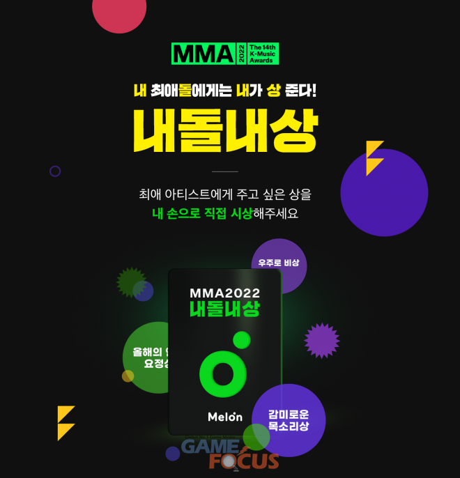 카카오엔터테인먼트(대표 이진수, 김성수)의 뮤직플랫폼 멜론(Melon)은 'MMA2022(멜론뮤직어워드)'의 사전 행사로 내가 좋아하는 아티스트에게 주고 싶은 상을 내 손으로 직접 시상해보는 '내돌내상' 이벤트를 이달 25일까지 진행한다.