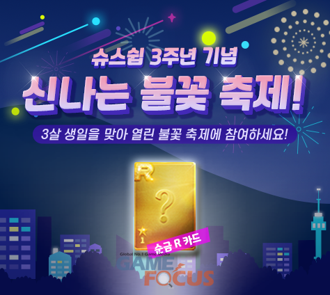 먼저, 가장 많은 페스티벌 코인을 적립한 10명에게 순금 프레임 실물 R카드를 보상으로 지급하는 '신나는 불꽃 축제' 이벤트를 진행한다. 11일 업데이트 이후부터 약 3주간 진행되는 이벤트 기간 동안 유저들은 미션을 수행하며 페스티벌 포인트 & 코인을 획득할 수 있으며 달성 레벨에 따라 인게임 아이템 보상으로 교환할 수 있다.