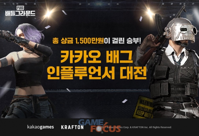 (주)카카오게임즈(대표 조계현)는 12일 (주)크래프톤(대표 김창한) 펍지 스튜디오가 개발하고 자사가 서비스하는 '카카오 배틀그라운드'의 신규 시즌을 기념해 총상금 1,500만 원 규모의 경쟁전 대전 미션 이벤트 '인플루언서 대전'을 진행한다.
