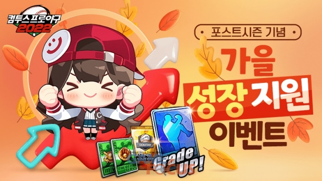 또한, 매일 게임 내 주어진 미션을 달성하면 선수 성장에 필요한 각종 아이템을 지급하는 가을 성장 지원 이벤트도 함께 펼쳐진다. 일자별 참여 결과에 따라 단계별 보상까지 지급되며, 총 3단계를 모두 달성할 경우 게임 내 최고급 육성 재료로 손꼽히는 ‘등급 상승권’까지 보상으로 획득할 수 있다.
