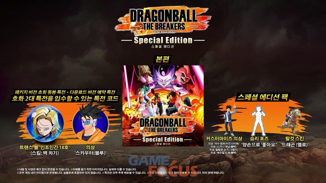 PlayStation®4, Nintendo Switch™, Xbox One용 '드래곤볼 더 브레이커즈 스페셜 에디션'(한국어판)은 오늘(2022년 10월 13일) 발매되었으며, 전국 온라인 및 오프라인 게임 상점에서 구입할 수 있다.