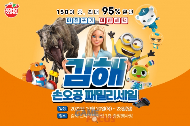 패밀리 놀이문화 기업 손오공이 오는 20일(목)부터 23일(일)까지 신세계백화점 김해점에서 손오공 패밀리세일을 진행한다고 밝혔다. 이번 김해 패밀리세일은 코로나19 이후 처음으로 지방에서 열리는 대규모 할인 행사다.