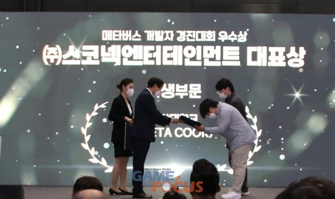 과학기술정보통신부가 주최하고 한국전파진흥협회, 한국메타버스산업협회가 주관하는 '메타버스 개발자 경진대회'는 국내 메타버스 산업 저변 확대 및 우수 인재 발굴·육성을 위해 마련됐다. 스코넥은 대회 취지에 공감하고 가상현실(VR) 개발자 발굴 및 육성을 통해 VR 콘텐츠 시장 성장에 일조하고자 지정과제 심사 및 시상 기업으로 참여했다.