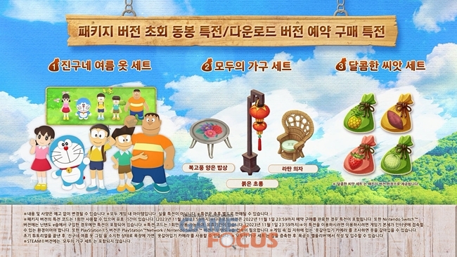 반다이남코 엔터테인먼트 코리아(대표 제랄드 누난)가 2022년 11월 2일 발매 예정인 Nintendo Switch, PlayStation5, Steam용 '도라에몽 진구의 목장이야기 대자연의 왕국과 모두의 집'(한국어판) 패키지 버전 예약 판매를 10월 20일 부터 시작한다.