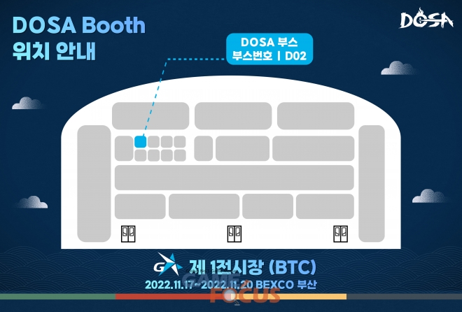 또한, 'DOSA'는 오는 11월 17일에 개막하는 국내 최대 게임 전시회 'G-STAR 2022' 에 참가한다고 밝혔다. 'DOSA' 부스(부스위치:제 1전시장, D02)에서는 게임을 체험 해볼 수 있는 플레이존 뿐만 아니라, 2023년 상반기에 런칭 예정중인 웹툰존을 배치하고, 스탬프 미션·하드모드 미션·럭키볼 이벤트 등 다양한 이벤트가 진행 될 예정이다.