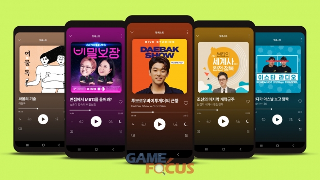 ● 국내 팟캐스트 콘텐츠 일부 예시: 송은이 김숙의 비밀보장 (코미디), 썬킴의 세계사 완전정복 (교육), 이스타 라디오 (스포츠), 책읽아웃 (예술 및 엔터테인먼트), 뇌부자들 (건강), 여둘톡 (이야기), 기담: 이상하고 신비한 이야기 (실제 사건), 에릭남의 대박쇼 (음악), 김지윤의 지식Play (뉴스 및 정치) 등