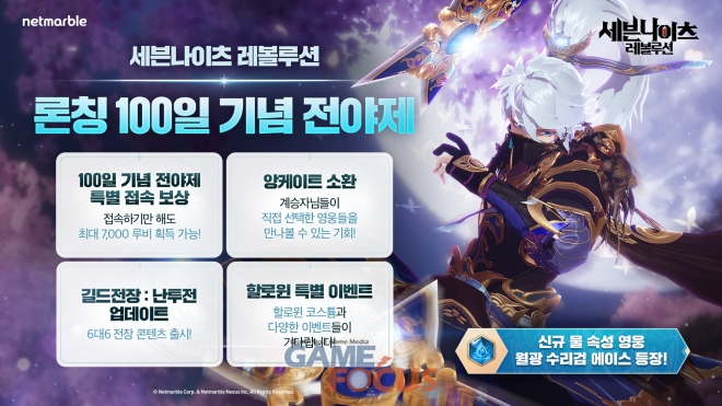 넷마블은 '세븐나이츠 레볼루션'의 서비스 100일을 앞두고 7일 간의 특별 출석 이벤트를 진행한다. 오는 11월 1일까지 7일 간 매일 1,000 루비를 지급하며, 최대 7,000개의 루비를 획득할 수 있다.