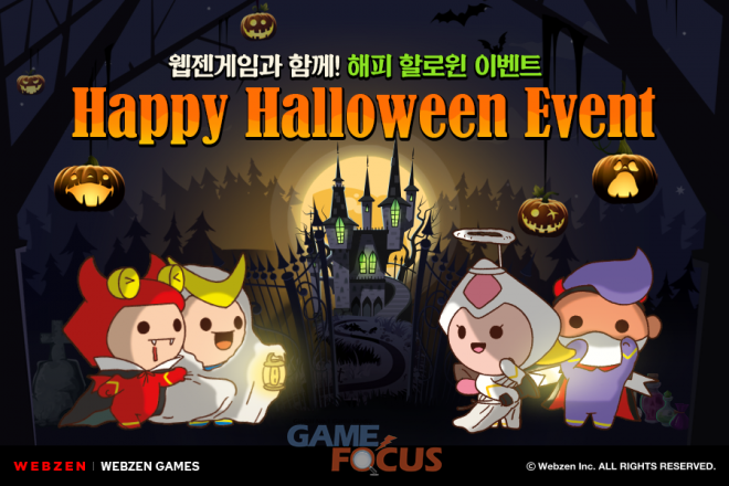 웹젠은 모바일게임 5종(‘뮤오리진3’, ‘R2M’, '뮤 아크엔젤2’, ‘뮤 아크엔젤’, ‘뮤오리진2')과 PC 온라인게임 2종(‘썬 클래식’, ‘샷온라인')에서 할로윈을 즐겁게 보낼 수 있도록 풍성한 혜택을 준비했다.
