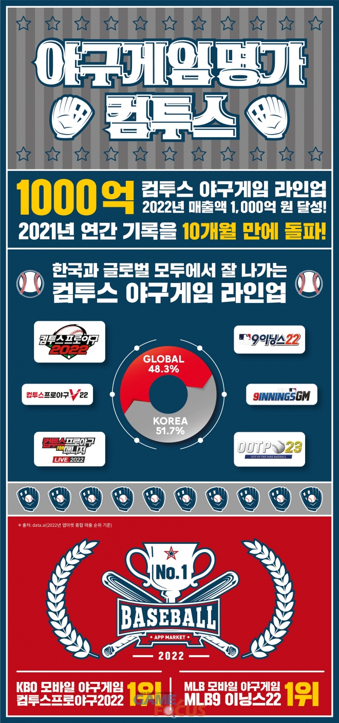 누적 매출 1000억 원 돌파, 컴투스 야구 게임 라인업 역대 최대 매출 기록