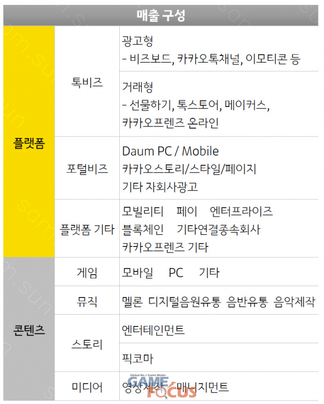 톡비즈 매출은 전 분기 대비 3%, 전년 동기 대비 15% 증가한 4,674억 원을 기록하며 성장세를 이어갔다. 이 중 비즈보드, 카카오톡 채널 등 톡비즈 광고형 매출은 광고 시장의 성장 둔화 및 계절적 비수기 영향으로 전 분기 대비 4% 감소했으나, 톡채널 매출의 확대로 전년 동기 대비 18% 성장했다. 선물하기, 톡스토어 등 톡비즈 거래형 매출은 전 분기 대비 14%, 전년 동기 대비 12% 증가했다. 포털비즈 매출은 전 분기 대비 7% 증가, 전년 동기 대비 8% 감소한 1,098억 원이다. 플랫폼 기타 부문 매출은 이동 수요 확대 및 카카오페이 매출 연동 거래액의 꾸준한 증가에 따라 전 분기 대비 9%, 전년 동기 대비 61% 성장한 4,098억 원을 기록했다.