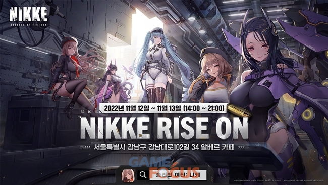 'NIKKE RISE ON'은 마치 게임 속에 들어가 있는 듯한 느낌을 주는 테마 공간으로 꾸며진 오프라인 이벤트로, 오는 12일과 13일 양일간 서울시 강남구에 위치한 카페에서 오후 2시부터 9시까지 진행된다.