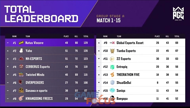 크래프톤(대표 김창한)이 'PUBG: 배틀그라운드'(이하 배틀그라운드)의 최상위 국제 이스포츠 대회인 '펍지 글로벌 챔피언십 2022(PUBG Global Championship 2022, 이하 PGC 2022)'의 그룹 스테이지 결과를 발표했다.