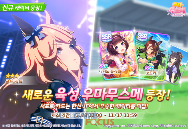 카카오게임즈(대표 조계현)가 8일, 사이게임즈(대표 와타나베 코우이치)가 개발한 인기 모바일게임 '우마무스메 프리티 더비'에 신규 육성 우마무스메 '골드 시티'를 추가했다.