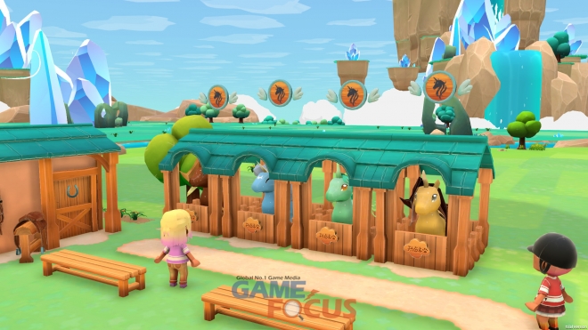 보석을 획득해 건물을 업그레이드하고 목장을 꾸미며 환상의 생물을 더 많이 입양하라. 목장 평판이 높아질수록 수업을 듣거나 토너먼트에 참가하고 싶어 하는 학생들도 많아진다. 기수와 기수가 제일 아끼는 환상의 생물을 짝지어 최고의 듀오를 만들고 축제에 참가한 왕자와 공주를 놀라게 하라.