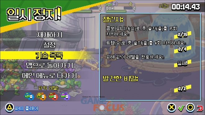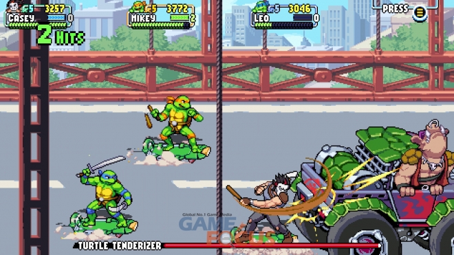 • 등껍질을 가진 영웅들: 화려한 픽셀 아트로 구성된 그래픽을 바탕으로 자신이 좋아하는 거북이를 선택하여 고유의 기술을 사용하여 적들을 물리쳐라. 숨막히는 액션과 다채로운 연속기, 닌자의 놀라운 능력으로 가득 찬 전투를 경험하라.