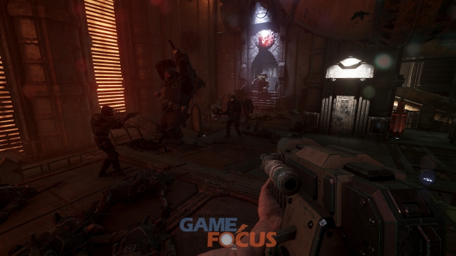 • 진화한 전투: '워해머 40,000: 버민타이드 2'에서 도입된 최고 수준의 근접전을 계승한 '워해머 40,000: 다크타이드'는 복합적인 총격전을 도입했다. 원거리와 근접전 사이의 균형을 마스터하며 적들을 처단하라. 체인소드를 휘두르며 썰어버리는 임팩트를 느끼거나, 라즈건으로 적들의 살점을 태워버려라.