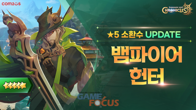 컴투스(대표 송재준, 이주환)가 소환형 MMORPG ‘서머너즈 워: 크로니클(이하 크로니클)’에 태생 5성 소환수 '뱀파이어 헌터'를 비롯한 다양한 콘텐츠를 업데이트 했다.