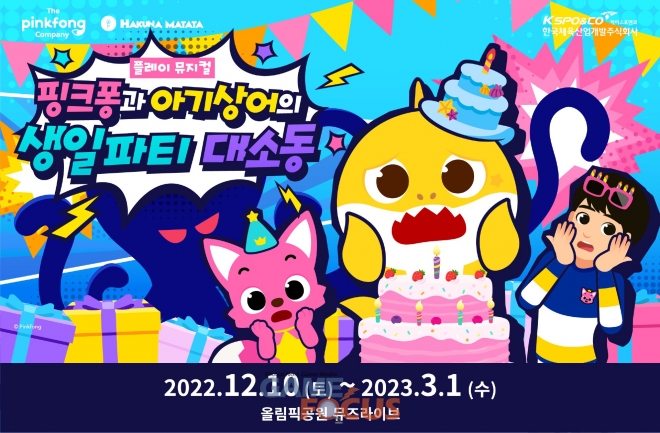 12월 10일 첫 개막을 시작으로, 2023년 3월 1일까지 플레이 뮤지컬 ‘핑크퐁과 아기상어의 생일파티 대소동’이 서울 올림픽공원 뮤즈라이브에서 개최된다. 지난 11월 7일, 1차 티켓 오픈 이후 인터파크 및 위메프 티켓 일간 1위를 기록하며 연말 최고의 기대작으로 주목받고 있다.