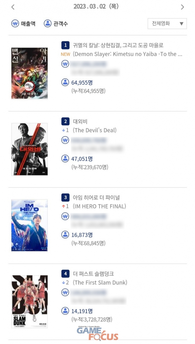 <귀멸의 칼날: 상현집결, 그리고 도공 마을로>가 지난 2일 극장에서 본격 개봉한 가운데 쟁쟁한 경쟁작 속 당당히 박스오피스 1위를 차지하며 흥행의 시작을 알렸다.