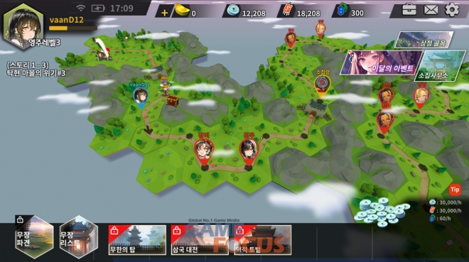 이 밖에도 레벨 등급을 상승시키는데 필요한 진급권을 획득할 수 있는 '무한의 탑', 클리어한 스테이지의 소탕을 통해 장비 아이템과 장비 경험치 아이템을 획득할 수 있는 '삼국대전', 보스 레이드 콘텐츠로 보물 아이템 획득이 가능한 '역적토벌' 등의 콘텐츠를 즐길 수 있다.