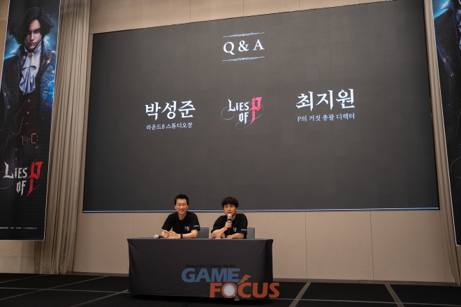 9일 조선 팰리스 서울 강남에서 진행한 'P의 거짓' 쇼케이스에는 네오위즈 박성준 라운드8 스튜디오장과 최지원 P의 거짓 총괄 디렉터가 참석했다.
