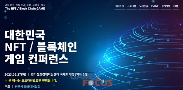 글로벌 NFT와 블록체인 게임 현황과 미래를 살펴볼 수 있는 '대한민국 NFT 블록체인 게임 컨퍼런스'가 오는 6월 27일 경기도 판교에 위치한 경기창조경제혁신센터 국제회의장에서 진행된다.