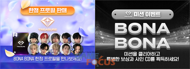 트레저의 컴백과 함께 다양한 인게임 이벤트도 열렸다. 8월 3일부터 8월 10일까지 진행되는 ‘TREASURE BONA BONA 미션 이벤트'에서는 미션을 완료하면 트레저의 신곡 한정 테마 카드를 포함한 각종 인게임 재화를 획득할 수 있다. 미션을 모두 완료했을 경우 인게임 로비를 꾸밀 수 있는 한정 배경을 얻을 수 있을뿐만 아니라 사인 CD 응모에 자동으로 참여된다.