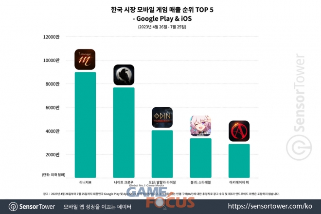 출시 후 주요 아시아 국가 모바일게임 순위에서 상위에 랭크