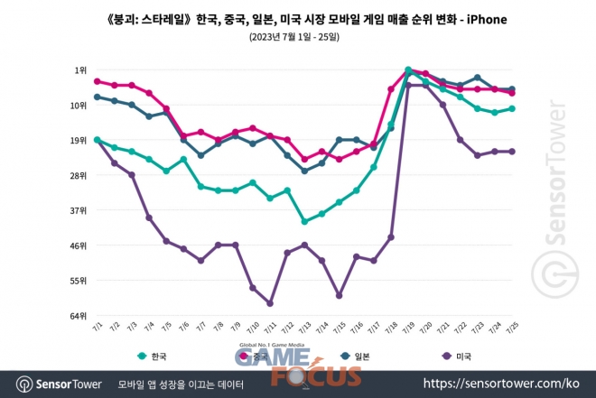 '붕괴: 스타레일'은 주요 아시아 국가 모바일게임 매출 순위 상위권에 오르는데도 성공했다. 중국과 일본에서는 3위, 그리고 국내에서는 약 3400만 달러의 누적 매출을 올리며 4위에 랭크됐다. '붕괴: 스타레일'은 국내에서 TOP 5에 올라가 있는 모바일게임 중 유일하게 MMORPG 장르가 아닌 게임이자 해외 퍼블리셔가 퍼블리싱한다는 점이 눈에 띈다.