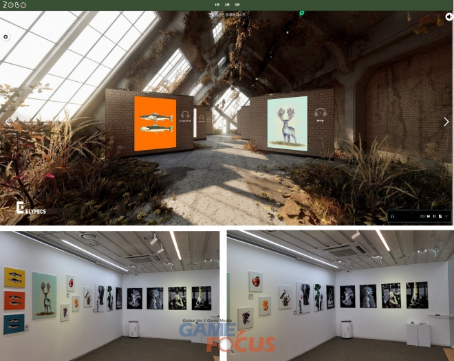 또한 텍스트 작가 강동균과 협업해 일러스트 작품 해설을 진행했고 각 작품은 텍스트 기능 음성 변환 기술(TTS)기반의 도슨트로 감상할 수 있어 작품 몰입도를 높였다. 이와 함께 ZOBO작가 작품의 특징인 작품 위에서 증강되는 AR애니메이션은 QR코드를 통해 가상공간에서도 즐길 수 있도록 구현했다.