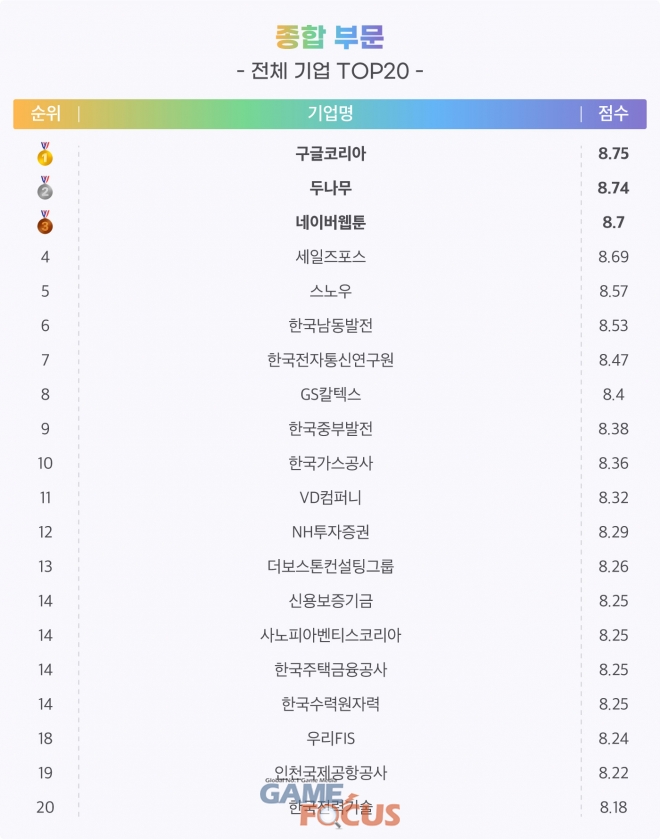 2023 상반기 일하기 좋은 기업 전체 1위는 '구글코리아', 대기업 1위는 '두나무'