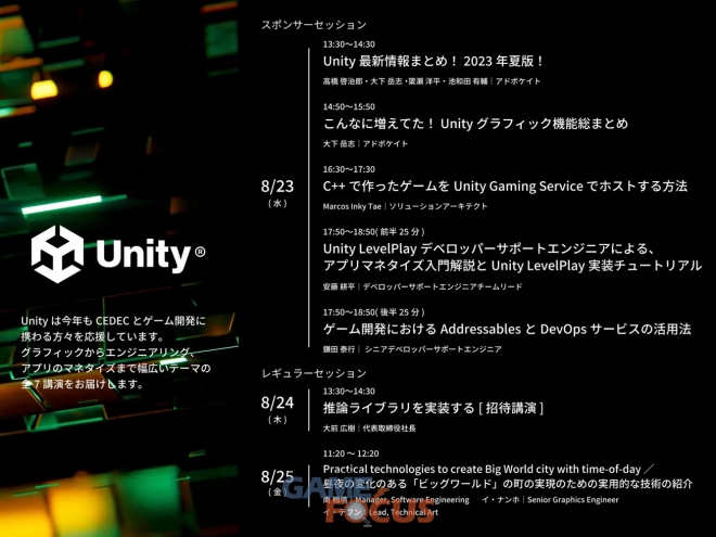 유니티가 일본 최대 게임 개발자 컨퍼런스 CEDEC 2023에서 최신 기술 관련 7개 세션을 진행한다.