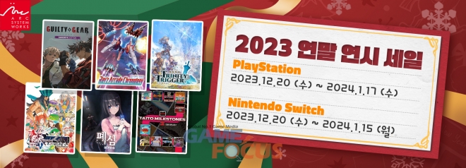 아크시스템웍스 아시아지점은 PlayStation™Store및 닌텐도 온라인 스토어에서 2023 연말연시 세일이 진행된다고 발표하며, 「길티기어 -스트라이브- 데어데빌 에디션」을 비롯하여 다양한 PlayStation®4, PlayStation®5 및 Nintendo Switch™ 다운로드 타이틀의 세일 정보를 공개했다.