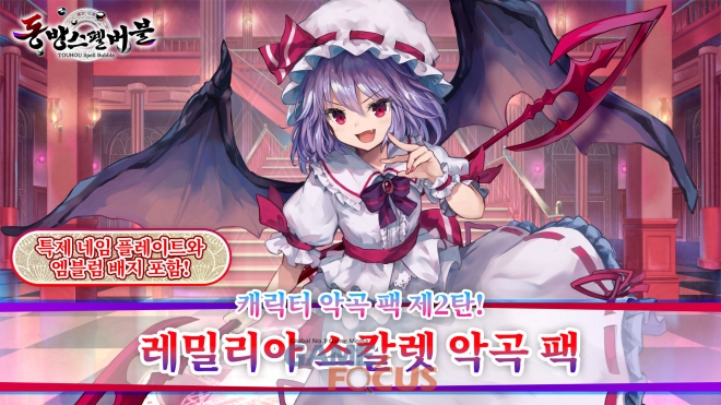 새롭게 출시된 ‘캐릭터 팩 이누바시리 모미지’뿐만 아니라, 신규 캐릭터 악곡 팩 ‘레밀리아 스칼렛 악곡 팩’ 또한 절찬 판매 중이다.
