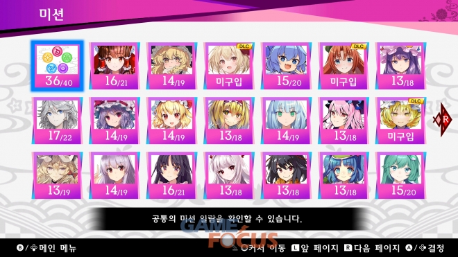- 총 30명의 동방 프로젝트 캐릭터가 등장