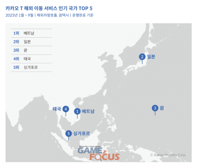 카카오 T 앱으로 해외에서 차량을 호출할 수 있는 ‘해외차량호출 서비스’는 엔데믹 시대를 맞아 지속적으로 성장세를 보인 것으로 나타났다. 이 중 해외차량호출 서비스 이용이 가장 많았던 지역은 베트남으로, 2023년 1~3분기 누적 이용량이 전년 동기간 대비 7배 이상 성장한 것으로 나타났다. 일본의 경우에는 지난 해 10월 비교적 늦은 시점에 무비자 입국을 허용함에 따라, 2023년 1월 한달 간 호출량이 2022년 전체 호출량을 넘어서며 가파른 상승곡선을 보였다.