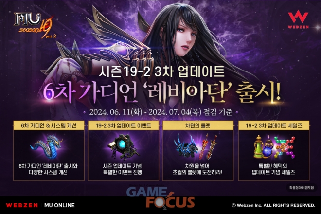 웹젠 PC MMORPG '뮤 온라인'의 시즌 19-2 3차 업데이트에 대한 자세한 내용은 공식 홈페이지에서 확인할 수 있다.