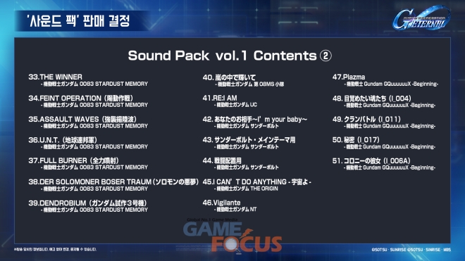 이번 업데이트 내용 중 이용자들 사이에서 호평을 받는 요소 중 하나는 바로 BGM 전환 기능에서 선택할 수 있는 곡을 추가할 수 있는 '사운드 팩'의 발매다. 사운드 팩 Vol.1에서는 시리즈를 아우르는 51곡의 명곡들이 수록되어 있다. 주목할 만한 점이라면 Vol.1로 표기돼 후속으로 Vol.2의 출시 여지를 남겨놨다는 점이다.