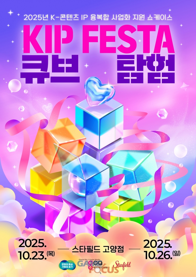 경기도의 ‘K(케이)-콘텐츠 지식재산권(IP) 융복합 제작 지원’ 사업을 통해 완성된 13개 콘텐츠가 오는 10월 23일부터 26일까지 스타필드 고양점 센트럴 아트리움에서 ‘킵(KIP) 페스타: 큐브 탐험’이라는 이름으로 공개된다.