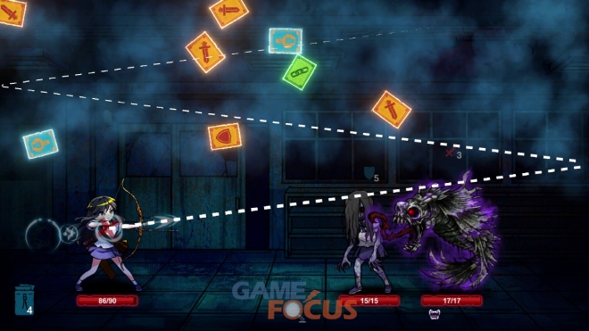 플레이어는 학교 곳곳을 배경으로 하는 스테이지에서 각 캐릭터의 특색에 맞춘 무기를 벽이나 장애물에 튕기는 등 여러 가지 방식으로 던지며 귀신들과 전투를 진행하면 된다.