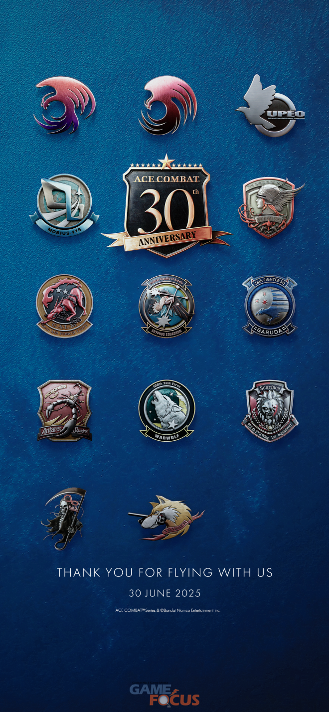 시리즈 30주년 기념 영상 및 월페이퍼를 공개하였다. 반다이남코 엔터테인먼트 코리아의 SNS 채널 및 에이스 컴뱃 공식 사이트에서 확인할 수 있다.