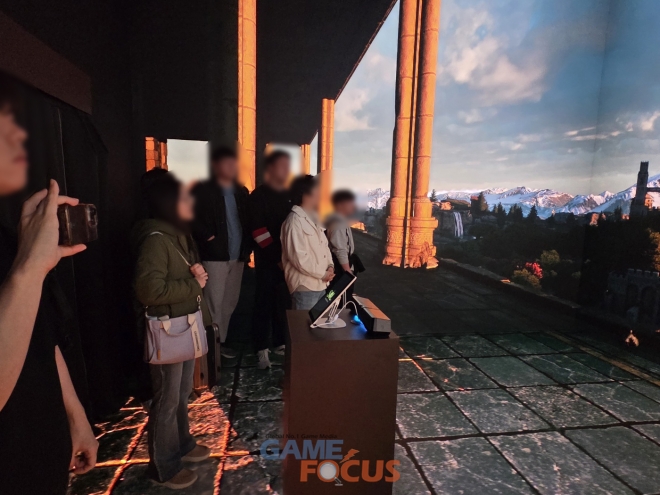솔: 인챈트의 야외 부스는 내부에 4면을 스크린으로 제작해 서라운드 음향으로 게임의 세계관이 담긴 시네마틱 티저 영상을 임팩트 있는 미디어 아트로 제공 관람객들에게 게임 속 세계에 빠르게 몰입하도록 만들었다.